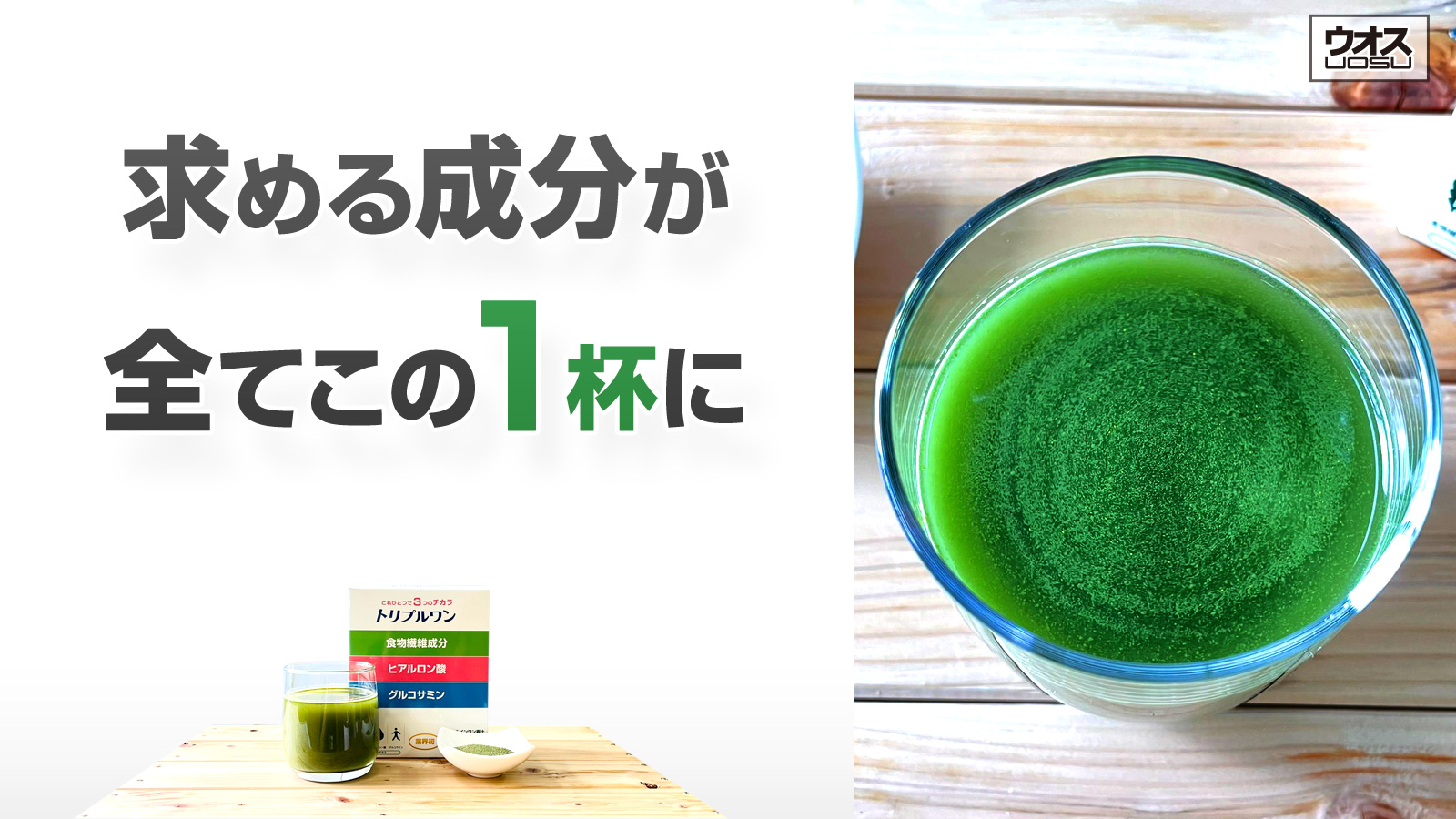 構想から10年、今ここに私たちが望んでいる青汁が完成いたしました。青汁の4成分である「ゴマ若葉」「大麦若葉」「キダチアロエ」「明日葉」に加え、ヒアルロン酸+グルコサミン配合で充実した成分、そしてその美味しさにこだわった最強の青汁です。